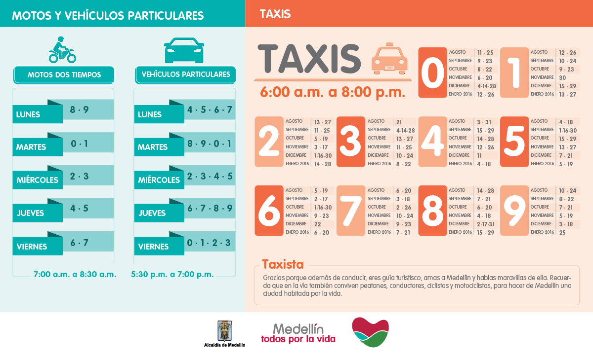 Pico y placa vigente en. #picoyplaca para taxis el día de hoy. Medellín durante el mes de agosto de 2021, de acuerdo con lo establecido por la alcaldía demedellín:. Confirman el regreso del pico y placa a medellín, de la siguiente manera. Autoridades lo buscan en el río samaná